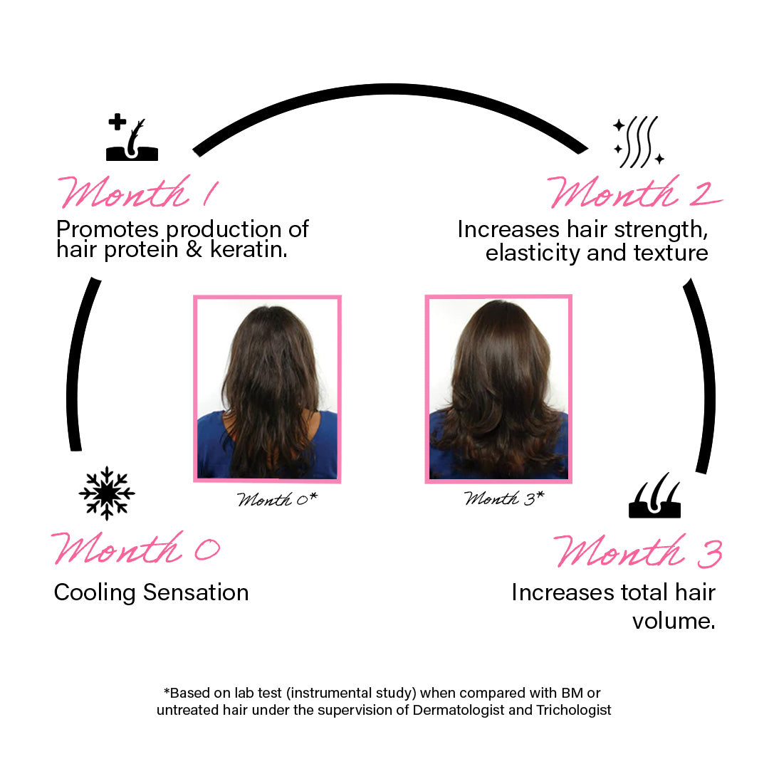 Hair volumizing serum works by improving the synthesis of keratin protein and reduces hair thinning by promoting increase in total hair volume.